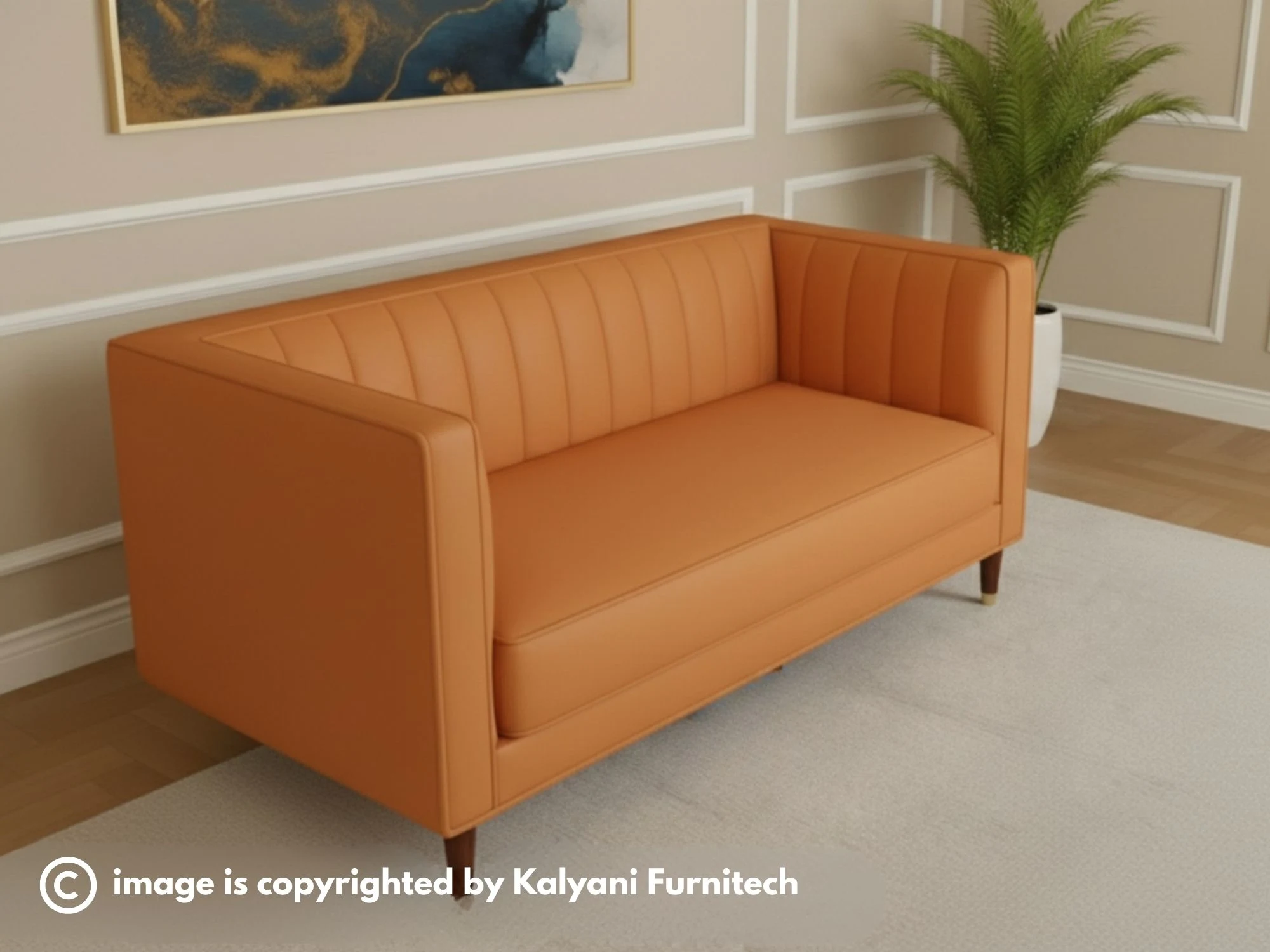 Our premium sofa collection from Kalyani Furnitech features a range of designs, from a grey button-tufted model and a navy blue model with diamond-quilted armrests to an elegant mauve sofa with vertical channeling and a vibrant orange piece with wrap-around stitching. Each model is upholstered in high-quality textured fabric and elevated by distinct leg finishes, including tapered dark wood, modern gold metal, or wood with gold accents. These versatile seating solutions combine sophisticated aesthetics with exceptional comfort, making them the perfect centerpiece for any contemporary home or office.