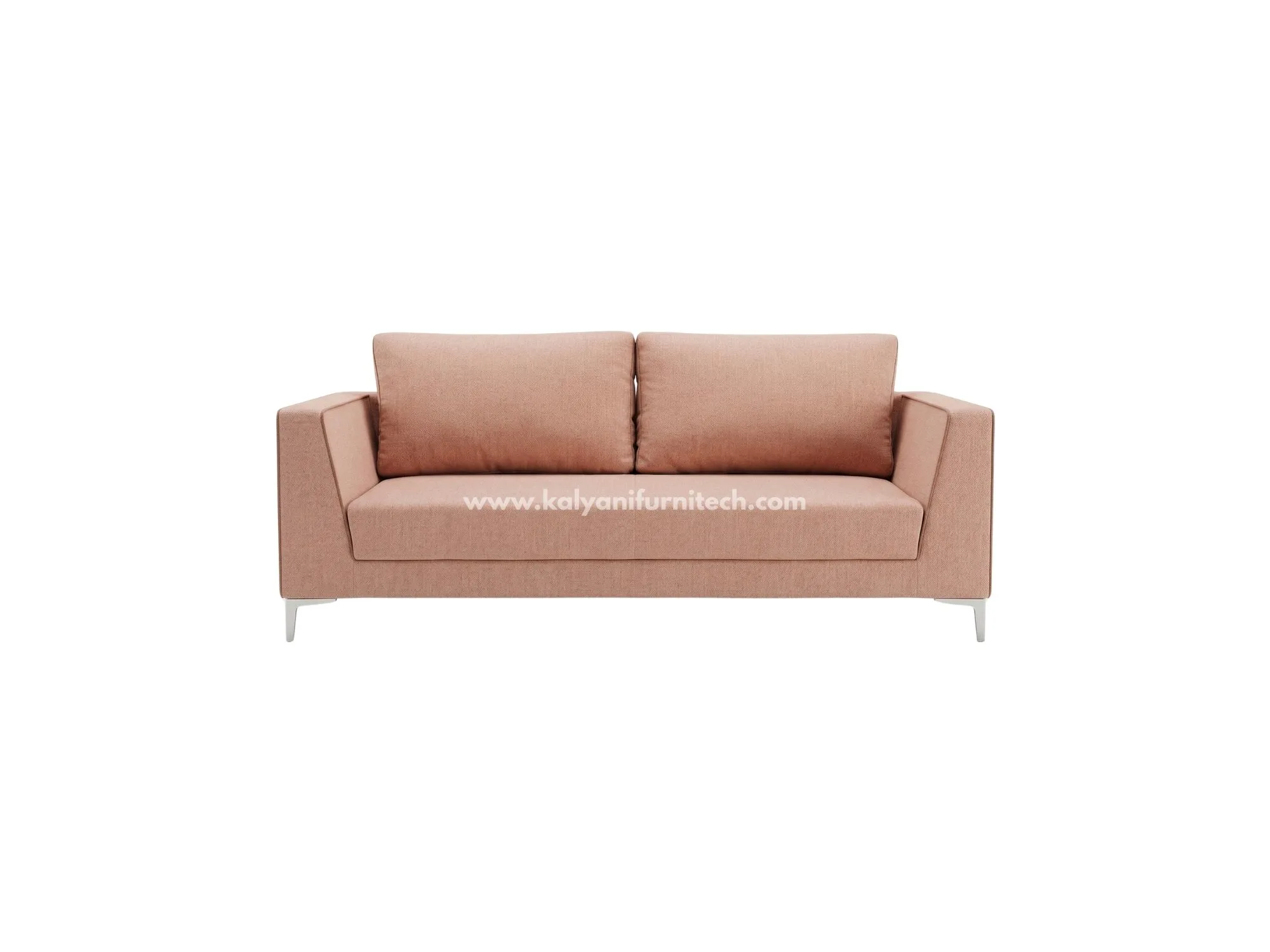 This premium 3-seater sofa by Kalyani Furnitech, Pune, features a sleek minimalist design upholstered in a sophisticated dusty rose woven fabric.