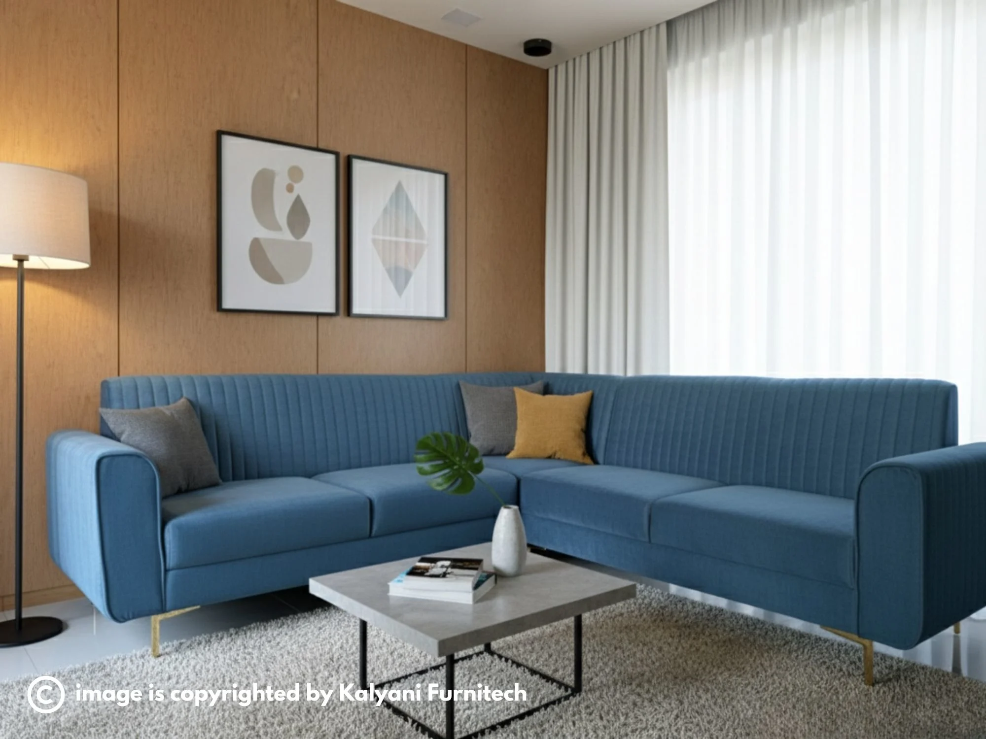 This contemporary L-shaped sectional sofa is the perfect blend of minimalist design and high-end comfort, making it a versatile centerpiece for any modern home. Featured in two stunning color options—a crisp, airy off-white and a sophisticated slate blue—it is designed to complement a wide range of interior palettes.