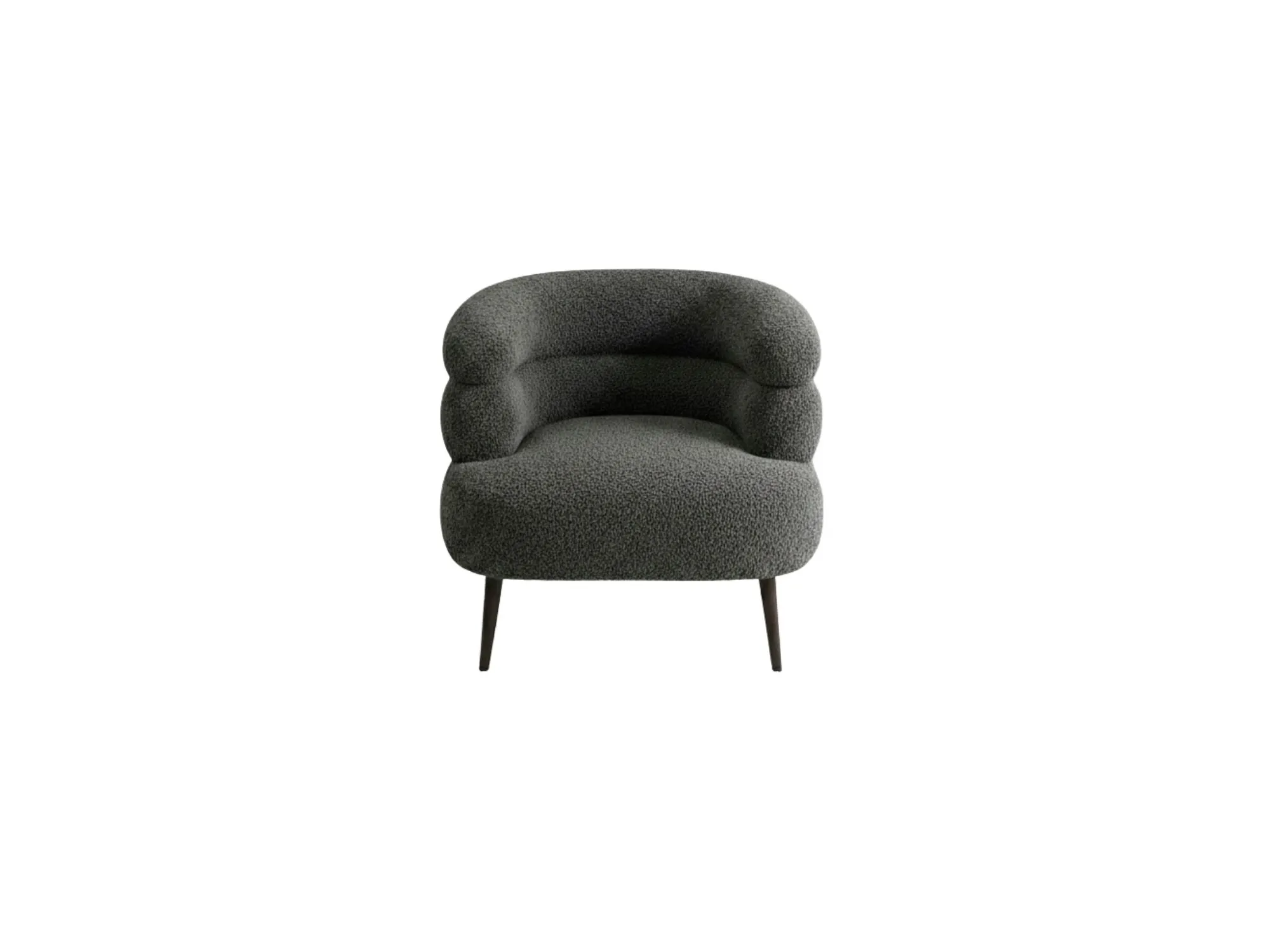 This sophisticated lounge chair features a contemporary tub-style silhouette with a vertically channeled backrest for refined elegance. Its plush, wrap-around design and integrated armrests offer a cozy, ergonomic seating experience perfect for any modern living space. Elevated by slender, tapered legs, the chair maintains a light and airy aesthetic while ensuring sturdy support. The clean lines and minimalist profile make it a versatile accent piece, easily fitting into reading nooks or formal lounges. Crafted with a smooth, premium upholstery, this chair seamlessly combines artistic flair with lasting comfort.
