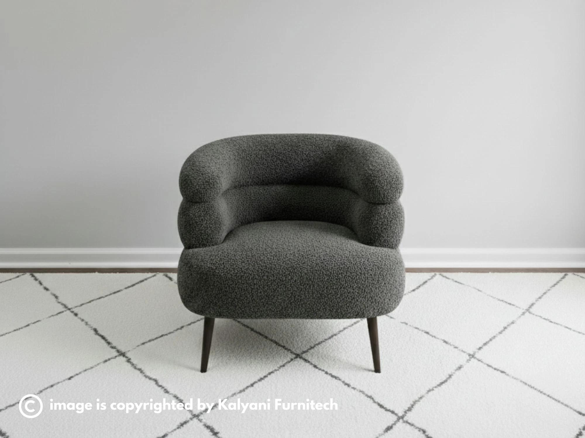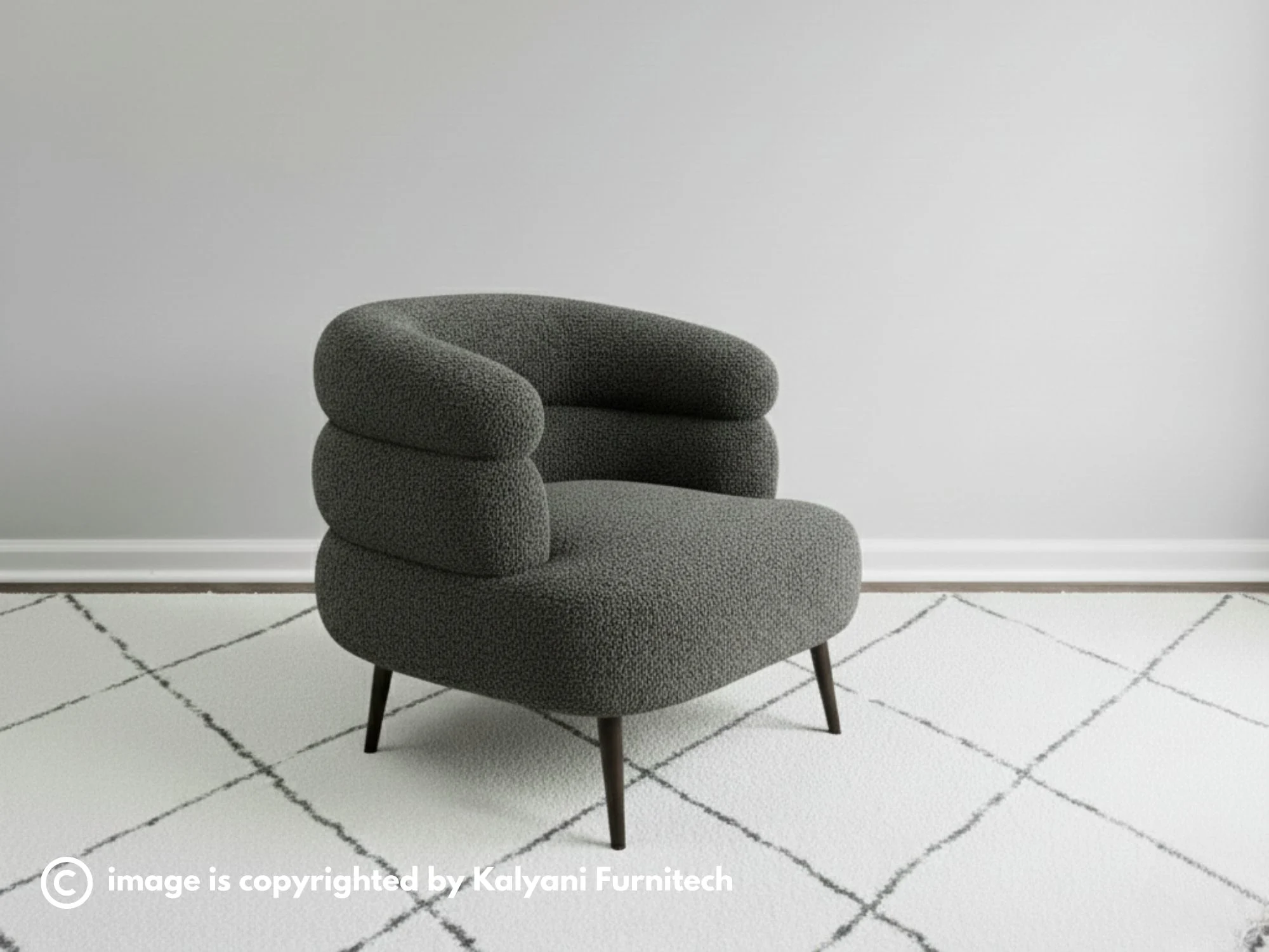 This elegant lounge chair features a contemporary, wrap-around silhouette designed for both exceptional style and ergonomic comfort. The curved backrest seamlessly transitions into integrated armrests, upholstered in a premium textured fabric that provides a cozy, cocoon-like seating experience. Supported by a stable, low-profile base, its clean lines and minimalist profile make it a versatile accent piece for modern living rooms or reading nooks. The dense, high-quality cushioning is engineered for long-lasting support, ensuring it remains a comfortable and timeless staple in your furniture collection. Elevate your home decor with this perfect marriage of sophisticated artistry and functional, everyday luxury.