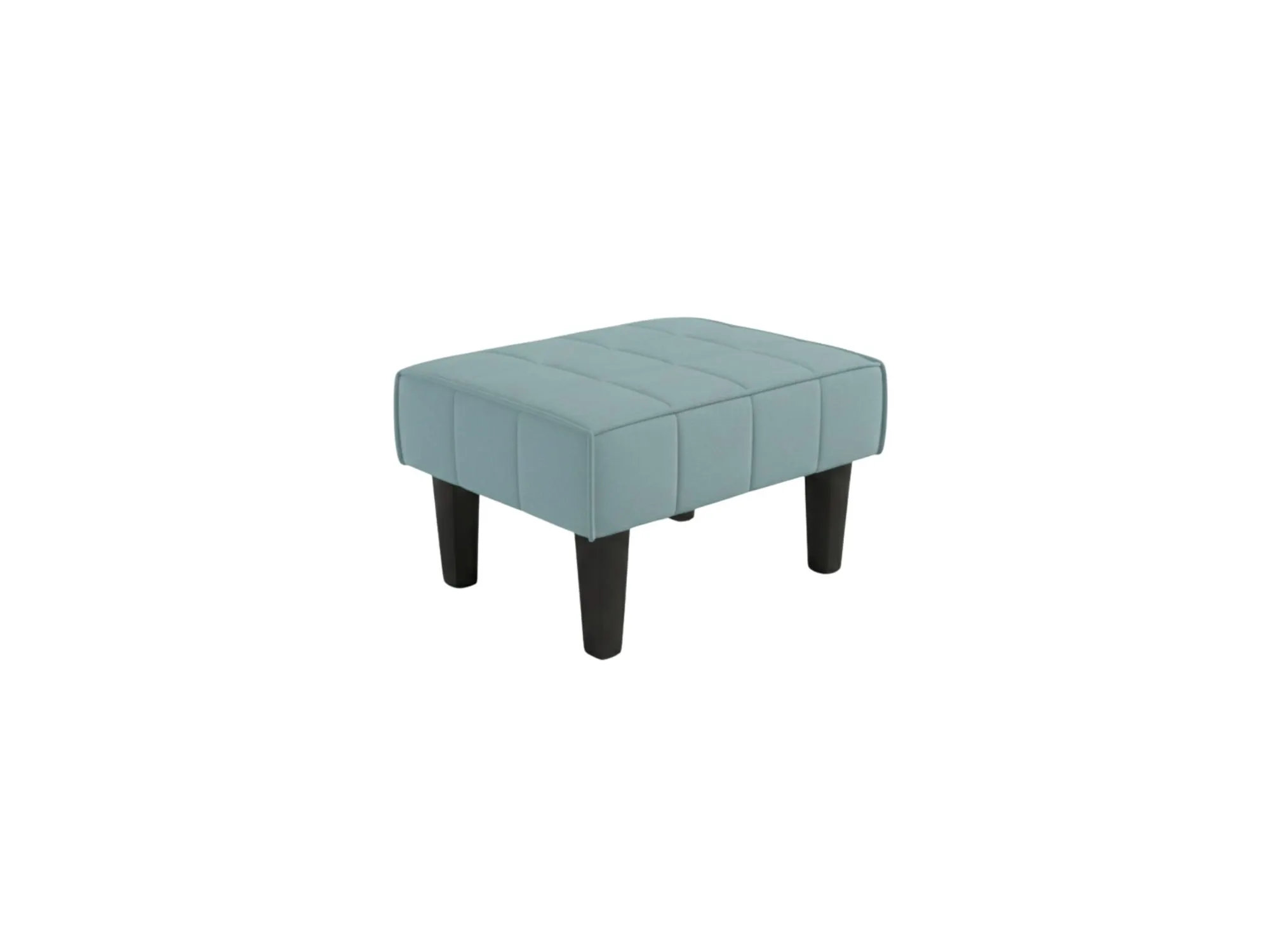 • Modern Tufted Rectangular Footstool: A larger profile piece in a calming sky blue fabric, featuring deep tufted detailing and robust dark-finished legs for ultimate relaxation.
