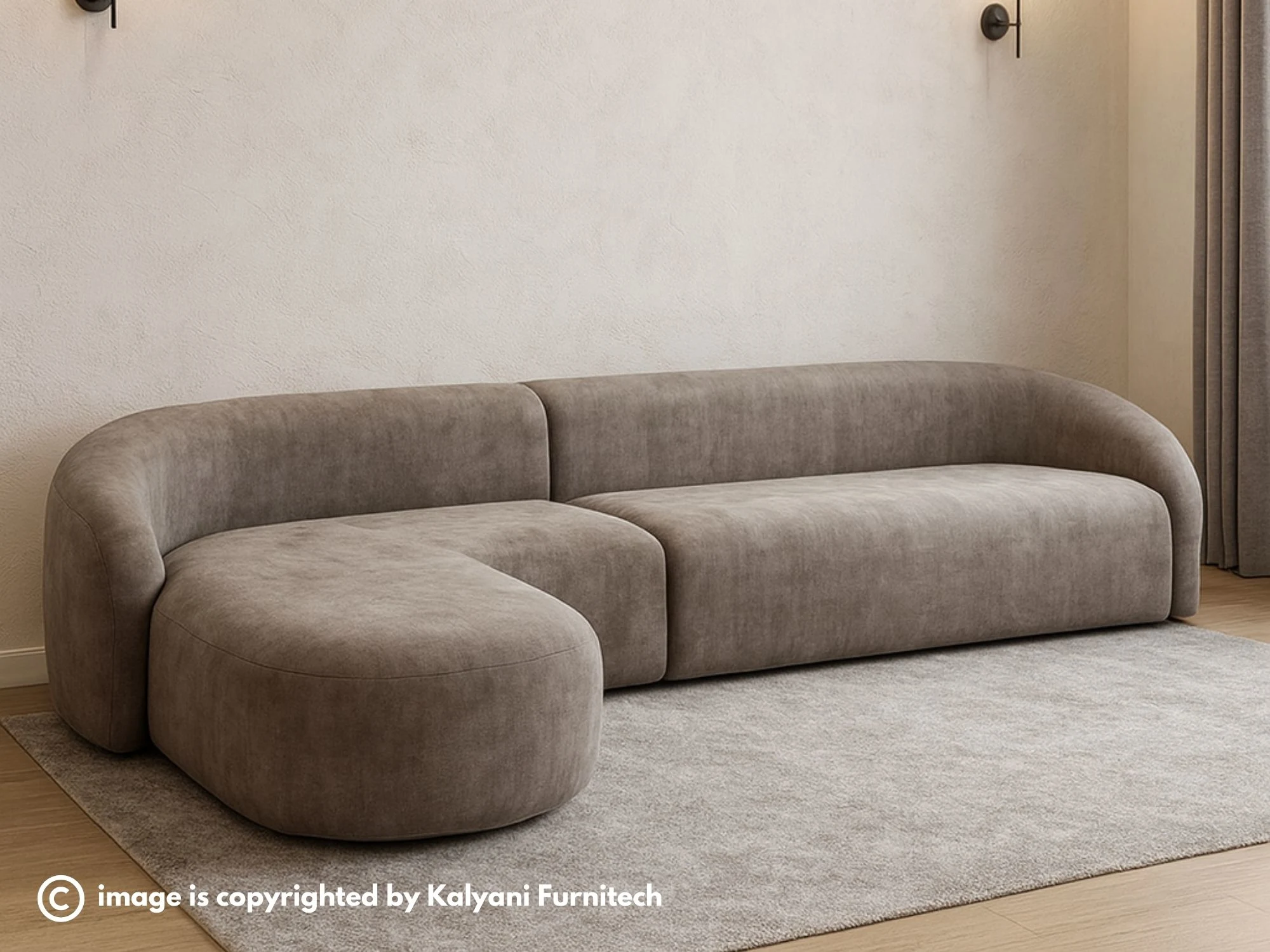 Elevate your interior with this sophisticated, low-profile sofa that masterfully blends modern minimalism with inviting comfort. Its distinctive, curved silhouette and seamless sectional design create an elegant focal point for any contemporary living space. Upholstered in a plush, velvet-style fabric, the sofa offers a tactile experience that is as luxurious as it is durable. The soft, organic lines of the backrest and integrated armrests provide ergonomic support while maintaining a clean and airy aesthetic.